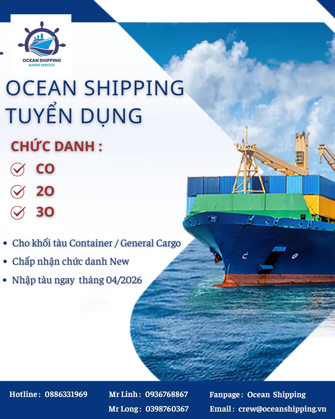 OCEAN SHIPPING TUYỂN C/O, 2/O, 3/O